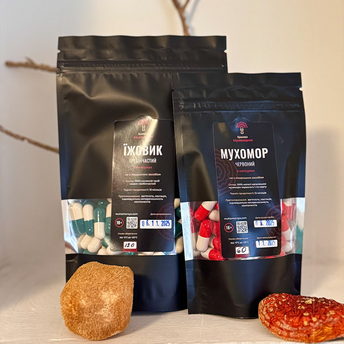 Мухомор червоний та їжовик гребінчастий в капсулах. Курс на місяць